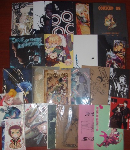 袋子们,除了刚才创也姑娘的BSR袋子和甘党那个大的没边的家教袋子没有放进去外别的都在这里了OTZ,当然最多的还是万有的,虽然他的本子在我身边的只有2本个人非商业志再录,但是特典到是一个不少,很多OMAKE的COPY本也有收集。除了万有的5个袋子,六白姬也有2个袋子,LAS的袋子也不如之前有爱了,RURU姑娘的袋子(右边黄色的)是特意看到日拍时找代理走后门入的,毕竟这个才200日币,可花的精力却不少。